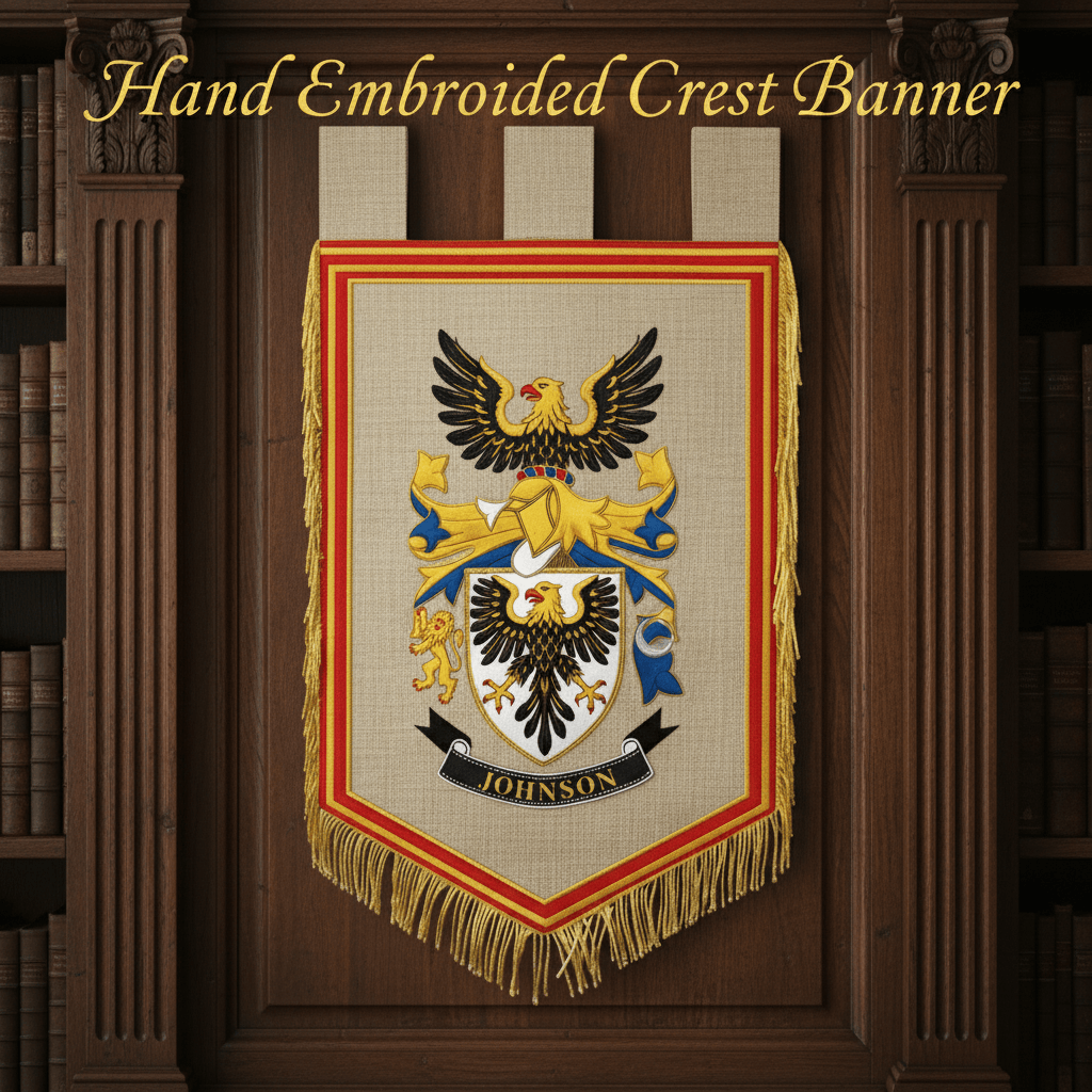 Family Crest Hand Embroidered Banner